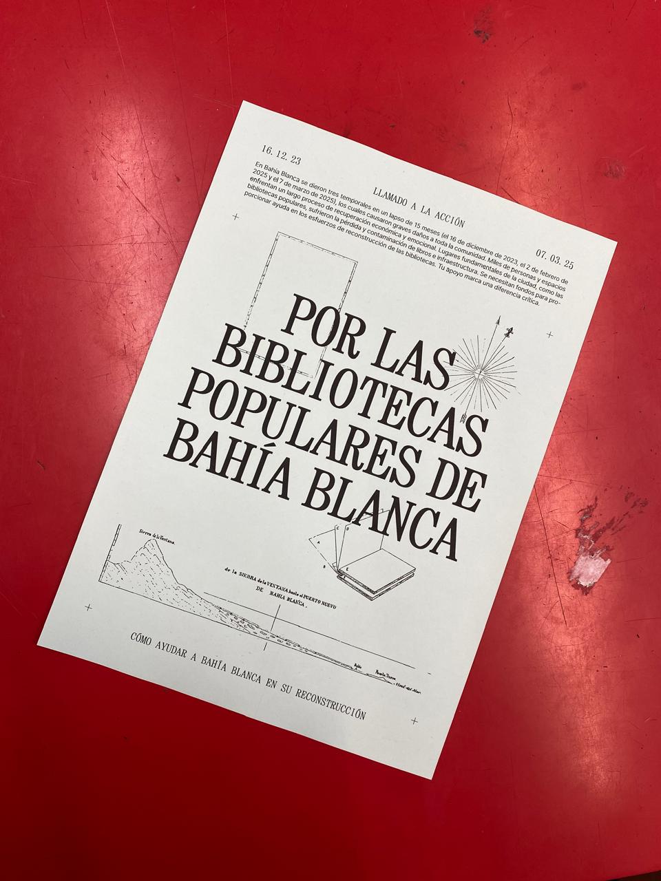 “Por las bibliotecas populares de Bahía Blanca” es una guía que permite dimensionar la situación de las bibliotecas populares tras las catástrofes en Bahía Blanca y canalizar apoyo para su recuperación económica mediante un listado con los alias de cada institución. El material está subido en un Drive en formato de libre acceso para que pueda compartirse e imprimirse colectivamente.